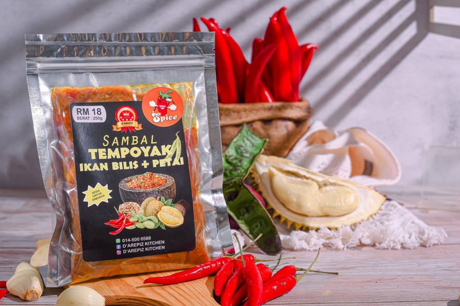 β Sambal yang berasaskan isi durian tempoyak yang segar dan manis.